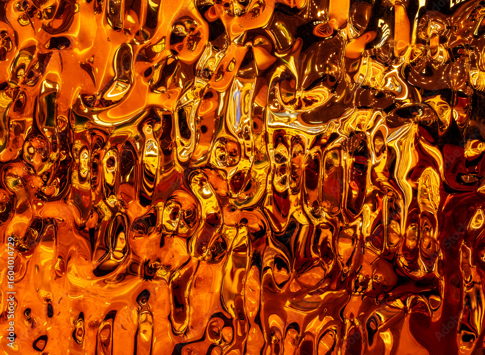 abstract, highly reflective, and metallic surface with intricate, fluid-like patterns. The surface creating a dynamic and vibrant visual effect. has a smooth, glossy texture, resembling liquid metal