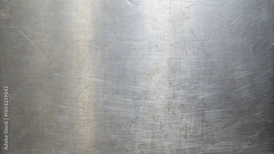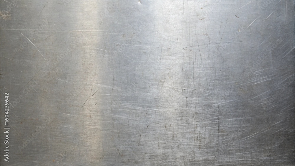 A detailed view of a scratched metal surface showcases a gray and silver texture creating an industrial feel