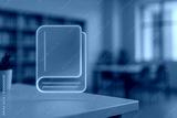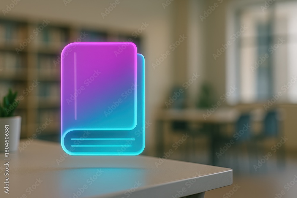 Bright neon book icon symbolizing reading, knowledge acquisition, and education in libraries or academic environments