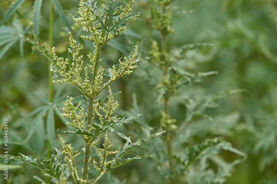 Close up of lush green flora with delicate white blossoms in natural setting.