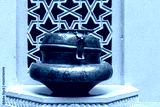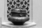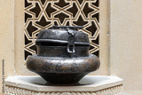 Ornate Antique Metal Pot Decorated with Engravings in Geometric Setting