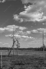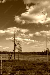 Vast Meadow Under a Bright Blue Sky with Scattered Clouds and Scattered Trees