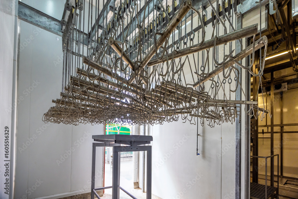 Abattoir Equipment carcass hanging on hooks on the ceiling, Modern Technology Hot Dip Pulley Hanging