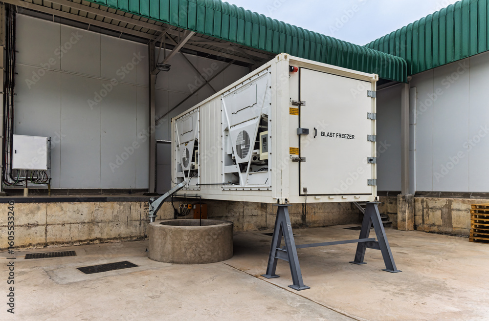 refrigerated shipping container, cold store in front of a warehouse, Abattoir Equipment