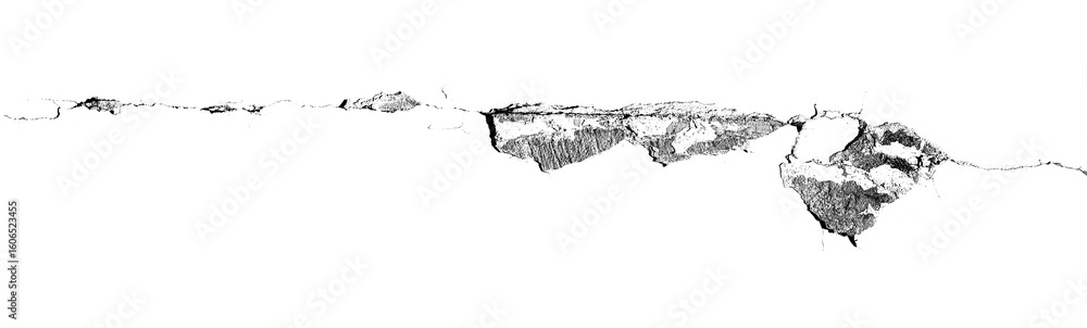 Isolated rough wall texture with peeling plaster and cracks transparent background PNG