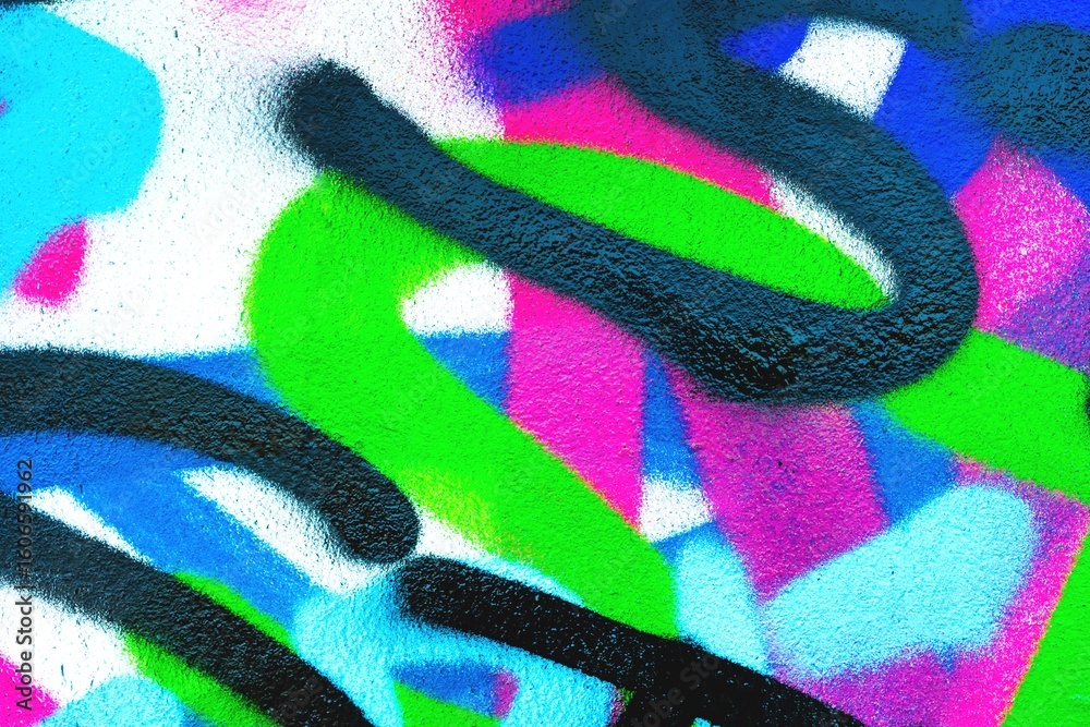 Graffiti art in neon green, pink, blue swirls on textured surface. 90s urban, fluorescent, funky design. Digital art, creative banners, street visuals, modern 90s, Y2K vibe.