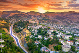 The old castle and fortress of Gjirokaster or Gjirokastra in Southern Albania. Old town is a UNESCO World Heritage Site. Closeup of Architectural Buildings.