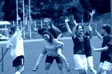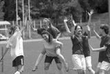 Female soccer players celebrate their teamwork on a sunny day outside. Concept of collective victory, energy and movement, dynamic moment in sports campaigns.