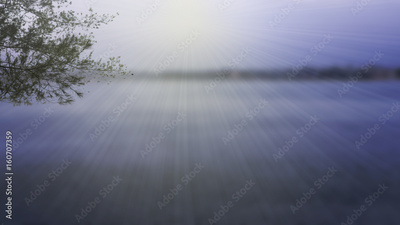 blur beautiful blue sky and blue river in the left corner and sunlight in the middle