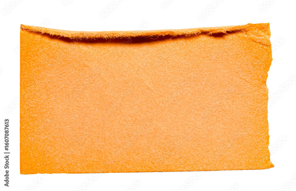 Isolated cut out torn piece of blank orange paper note cardboard with rough texture edges and copy space for text, transparent png background design element