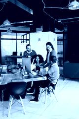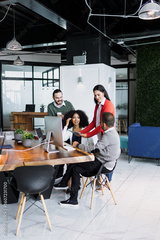 latin business people having a discussion and working in an office in Mexico Latin America, hispanic coworkers using laptop or tablet