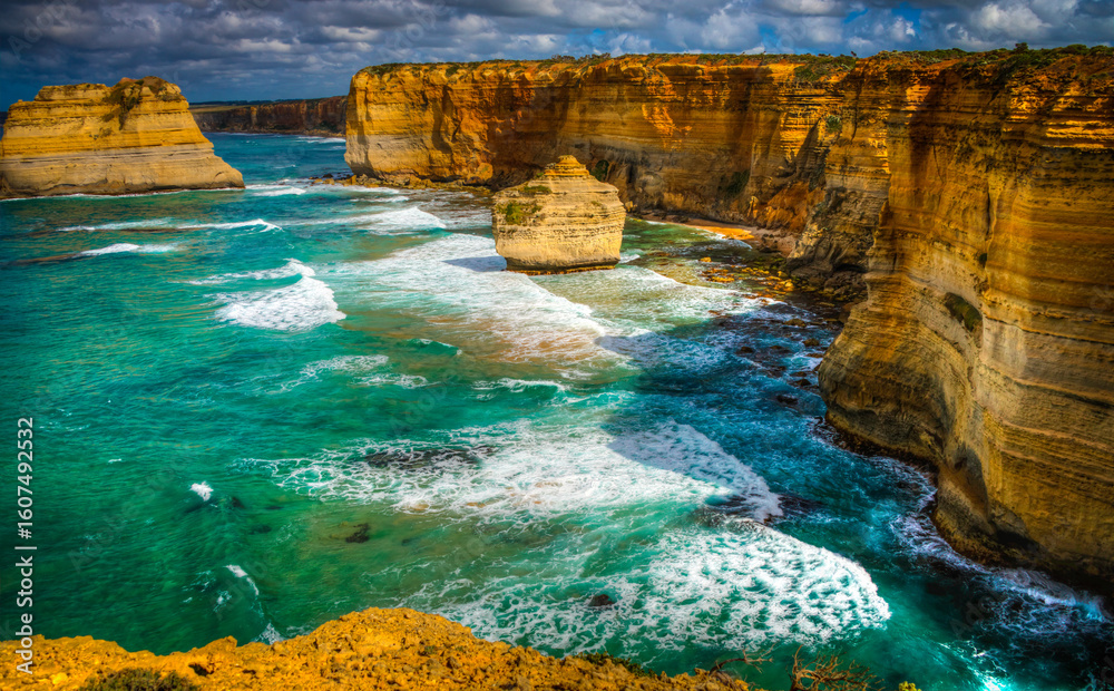 Turquoise oceans waves lapping at the cliffs, Victoria, Australia, Great Ocean Road
