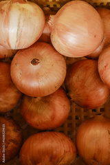 Top view of a vegetable background of freshly harvested red organic white onion straight from the farmland outdoor at daytime inside a greengrocer in Japan with space for text.