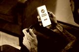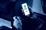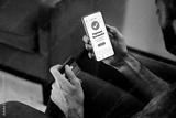 Making a credit or debit card payment online. Successful digital payment confirmation on a mobile phone screen. Man in his living room completing a purchase.
