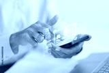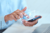 Person Using Smartphone With Futuristic Holographic Interface Displaying Digital Credit Card And Biometric Authentication, Representing Advanced Technology, Online Payment Security.