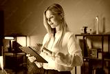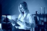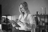 Professional Woman Using Digital Tablet In Modern Office Setting, Illustrating Technology, Productivity, And Efficiency In Workplace Environment.