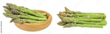 fresh asparagus in wooden bowl isolated on white background