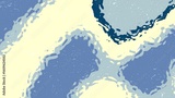 Desertcore Deep Cerulean Cream Abstract background with flowing shapes in blue, light blue, and yellow creating a dynamic, modern artwork