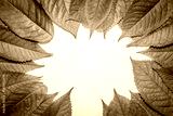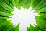 Creative layout made of hophorn ironwood green leaves. Flat lay. Nature background