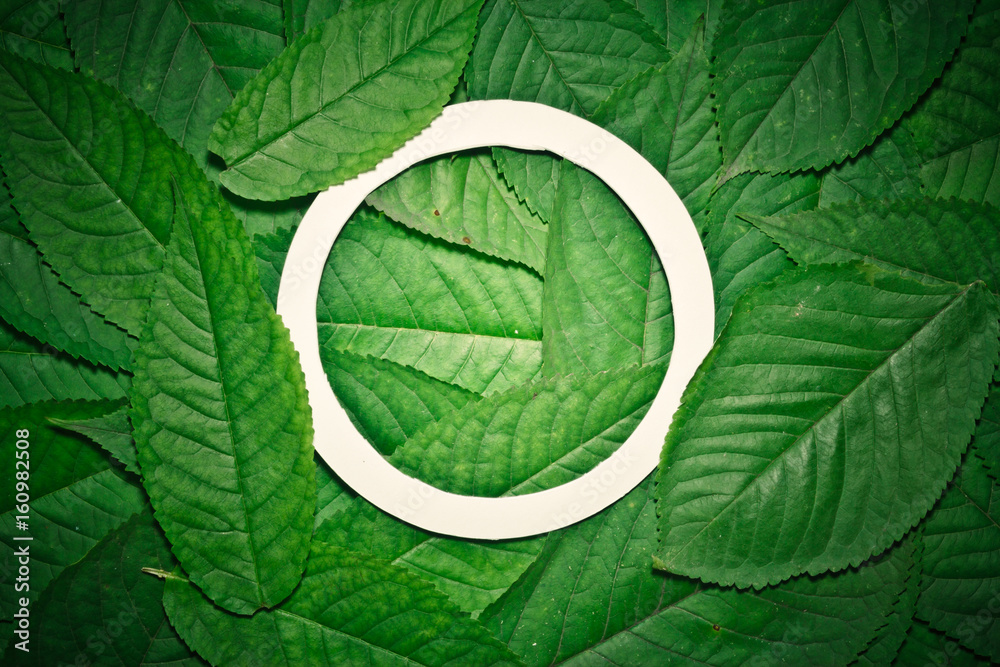 Creative layout made of hophorn ironwood green leaves. Flat lay. Nature background