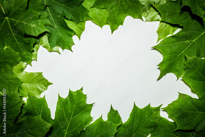 Creative layout made of maple tree green leaves. Flat lay. Nature background