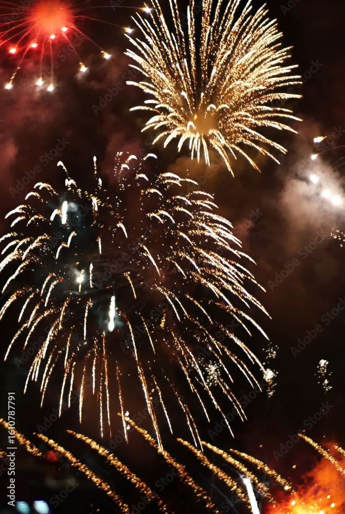 Vertical Horizon Golden Firework Countdown to new year 2025 party time event anniversary independence day night time celebrate national holiday. Happy new year 2025, 4th of july holiday festival