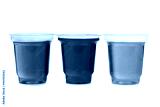 Jam in plastic with raw fruit on white background