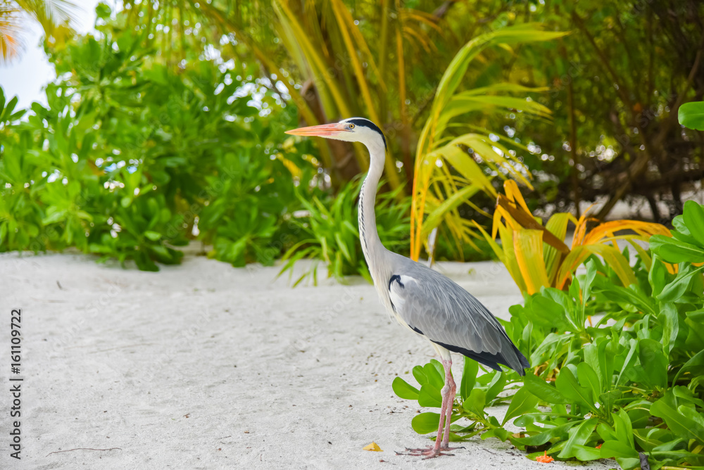 Egret walking on the beach in ADAARAN Island,Maldives