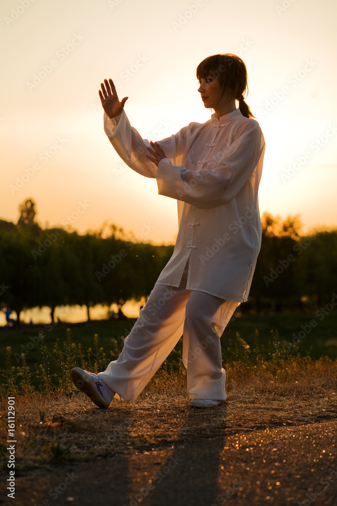 woman in white suit make's taiji chuan exercise - 10