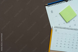 close up of calendar on the brown table background, planning for business meeting or travel planning concept
