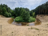 Krajobraz nad rzeką. Drzewa i zielone, gęste zarośla rosnące nad rzeką. Landscape by the river. Trees and green, dense thickets of sewage by the river