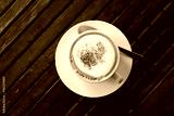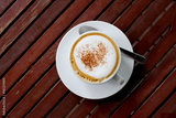 latte art coffee on wood table