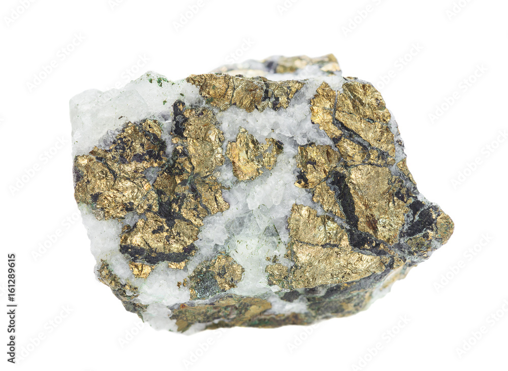 Chalcopyrite in quartz isolated on white