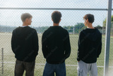 Three teenage boys chill together while enjoying a calm outdoor moment