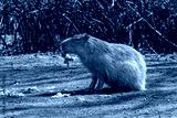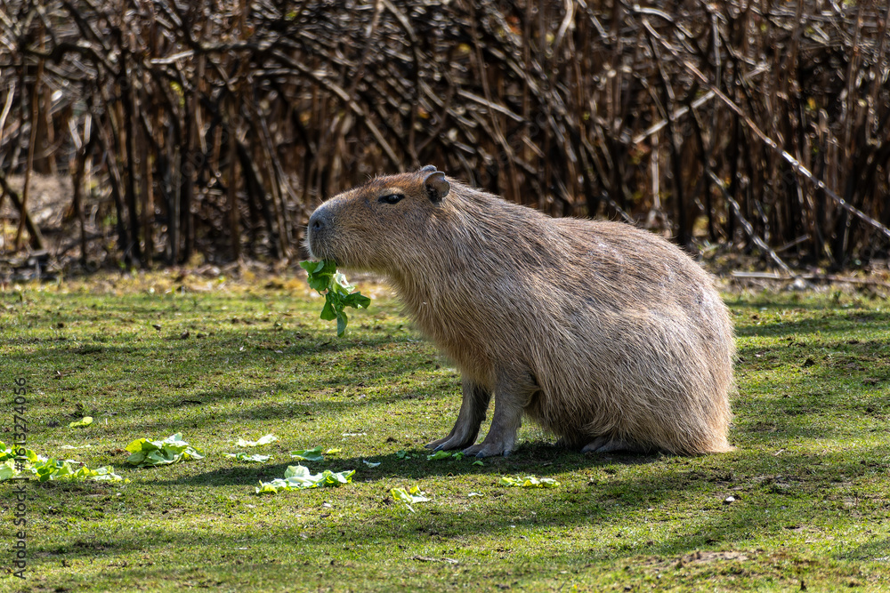 Capybara, Hydrochoerus hydrochaeris grazing on fresh green grass