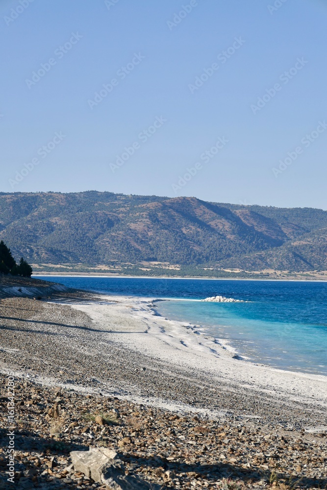 Blue lake scenery. River, trees, sky. Lake in Turkey High quality photo