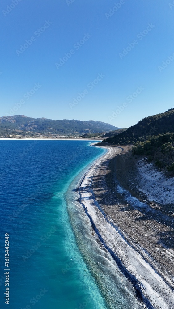 Blue lake scenery. River, trees, sky. Lake in Turkey High quality photo