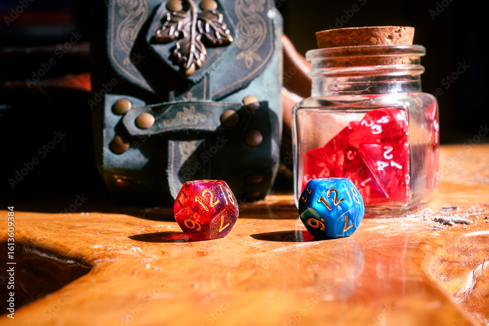 Colorful D12 Dice With Glass Jar And Leather Bag