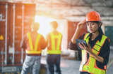 Asian female warehouse managers check the stock order details and goods supplies with digital tablets in workplace warehouse. industry logistic export import distribution concept.