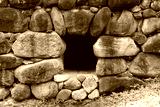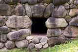 Stone Wall with Small Square Opening and Green Vegetation Surrounding It