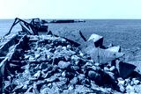 Old Damaged Pier With Ruins by a Serene Blue Sea