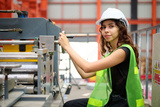 Engineer or worker checking machine control in the factory