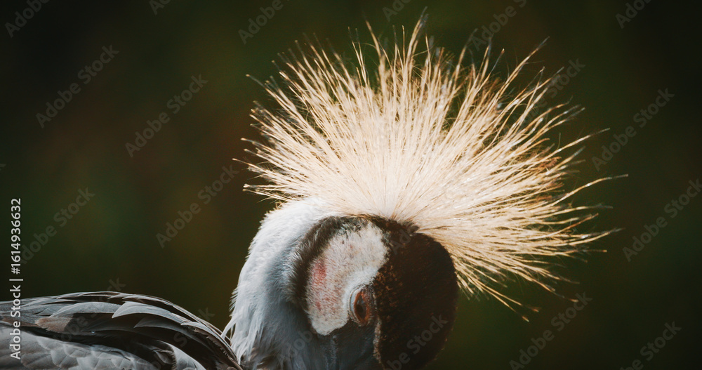 Close-Up of Graceful Crane Showcasing Intriguing Mohawk