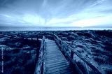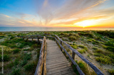 Wooden Walkway to paradise beach at sunset time - Tuscany - Travel destination in Italy