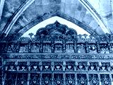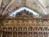 Gold gleeming Manueline choir stalls at Mosteiro de Santa Cruz monastery at Coimbra, Portugal