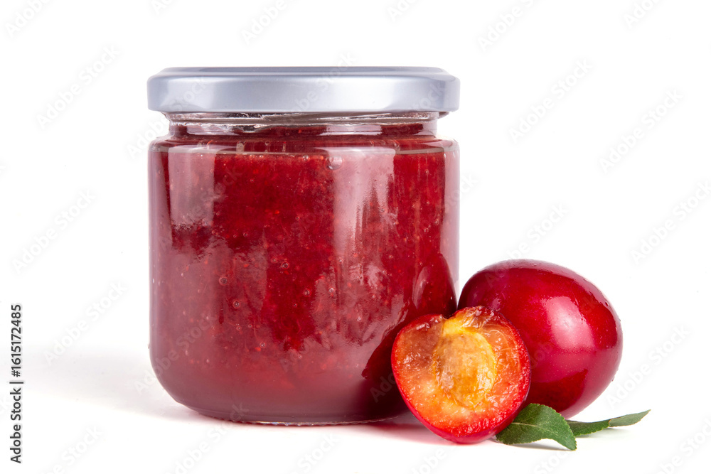 Cherry plum jam in small jar