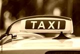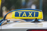 Black and yellow taxi sign on the roof of a car