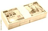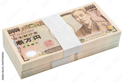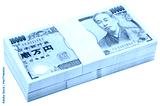 Japan 10000 yen banknotes falling in the air isolated on white, Flying 100 yuan won banknotes isolated on white background With clipping path PNG file.