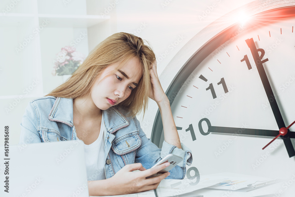 Stress worry women office worker receiving message payment overdue, Times to pay billing invoice