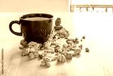 Freshly filtered coffee, showing its amber transparency and rising aromas in a handmade ceramic cup